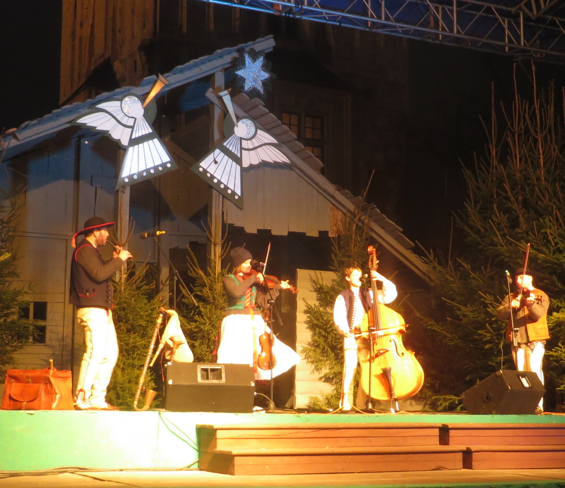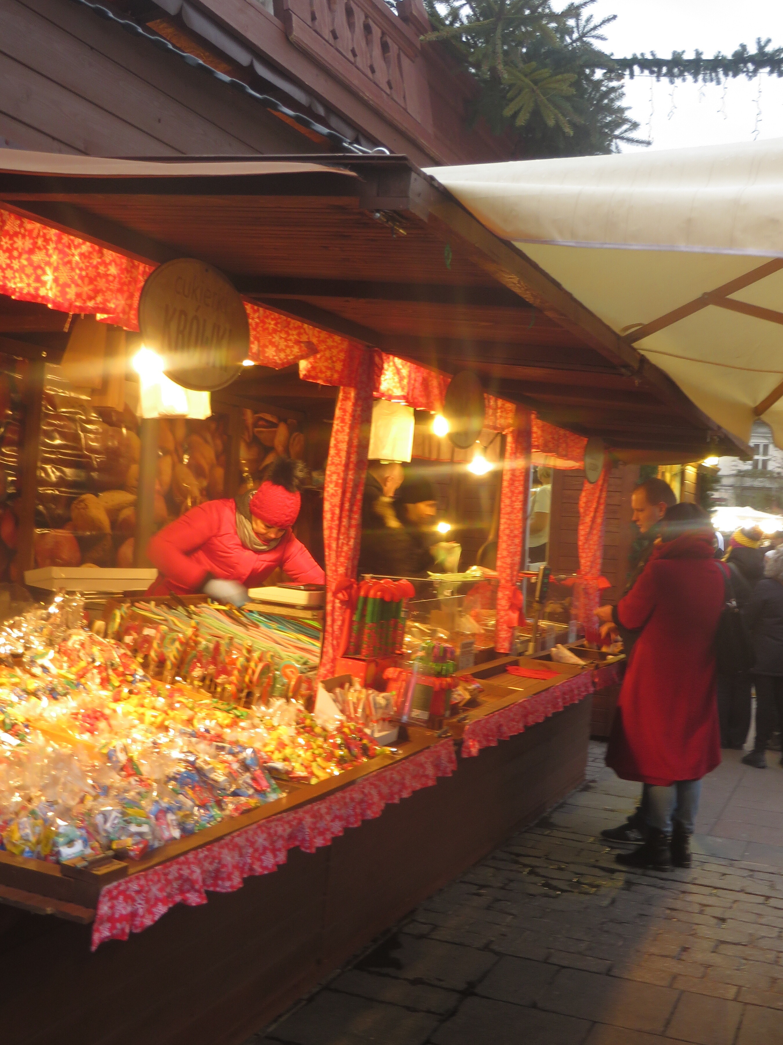 Dans 80 cabanes en bois on trouve des décorations et des produits de l'artisanat polonais, des spécialités polonaises comme raviolois polonais /pierogi/, des soupes, fromage traditionel des montagnes Tatras /oscypek/ sans oublier pain d'épices et autres gourmandises, à emporter ou à déguster sur place accompagné un bon vin chaud.